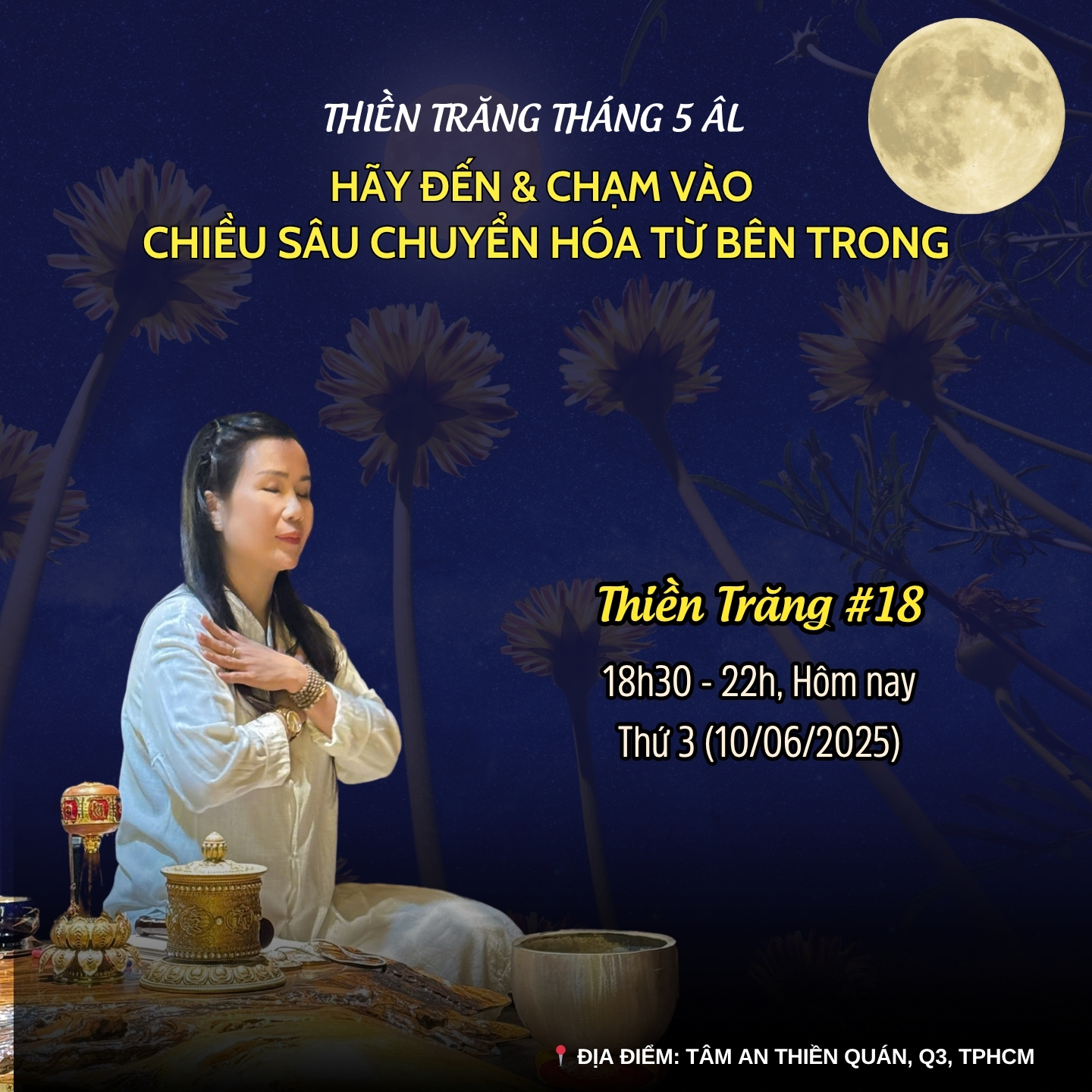Buổi thiền trăng #22 sẽ được diễn ra từ 18 giờ 30 phút đến 22 giờ, Thứ 2, ngày 6/10/2025 (Ngày 15 âm lịch).